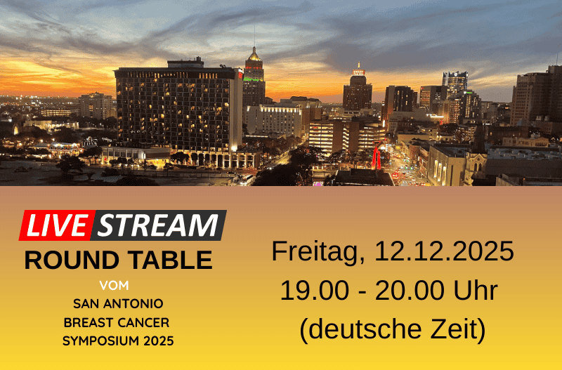 Am 12. Dezember 2025 findet von 19.00 – 20.00 Uhr (deutsche Zeit) der Brustkrebs Deutschland e.V. Round Table live vom größten Brustkrebskongress, dem San Antonio Breast Cancer Symposium (SABCS) in San Antonio, USA, statt!
