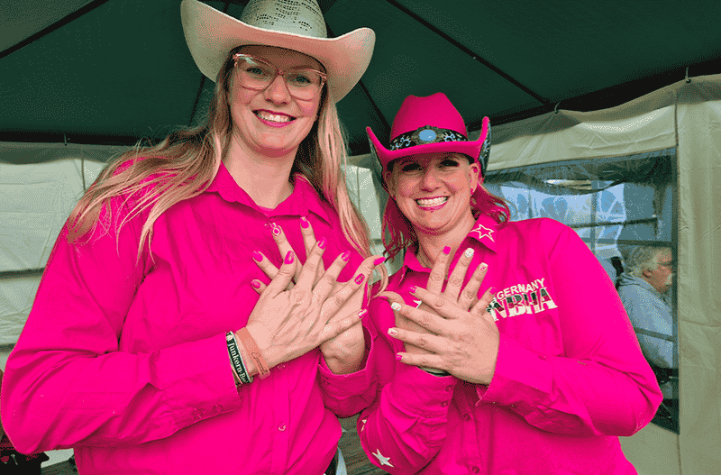 Wir durften mit einem Infostand mit dabei sein und das Pink Ranch Rodeo hautnah miterleben. Das Programm ließ keine Wünsche offen: Rasante Ritte, tolle Stimmung, spannende Wettbewerbe wie Barrel Race und Pole Bending und Köstlichkeiten aus der Cowboy-Küche. Den Auftakt machte Dorkas Kiefer, die die amerikanische Nationalhymne sang. Am Mikrofon: Event & Country DJ Guido Rose, der das Rodeo moderierte und ebenso herzlich wie unterhaltsam durchs Programm führte. Auch die kleinen Gäste kamen nicht zu kurz: Kinderschminken, Hüpfburg und jede Menge Spaß warteten auf sie. Am Abend spielte die Band Gone Country live.