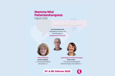 Der Mamma Mia!-Patientenkongress 2026 rund um die Themen Brustkrebs und Gynäkologische Krebserkrankungen findet am 07. und 08. Februar digital statt. Informationen dazu finden Sie im Beitrag. Wir freuen uns schon sehr!